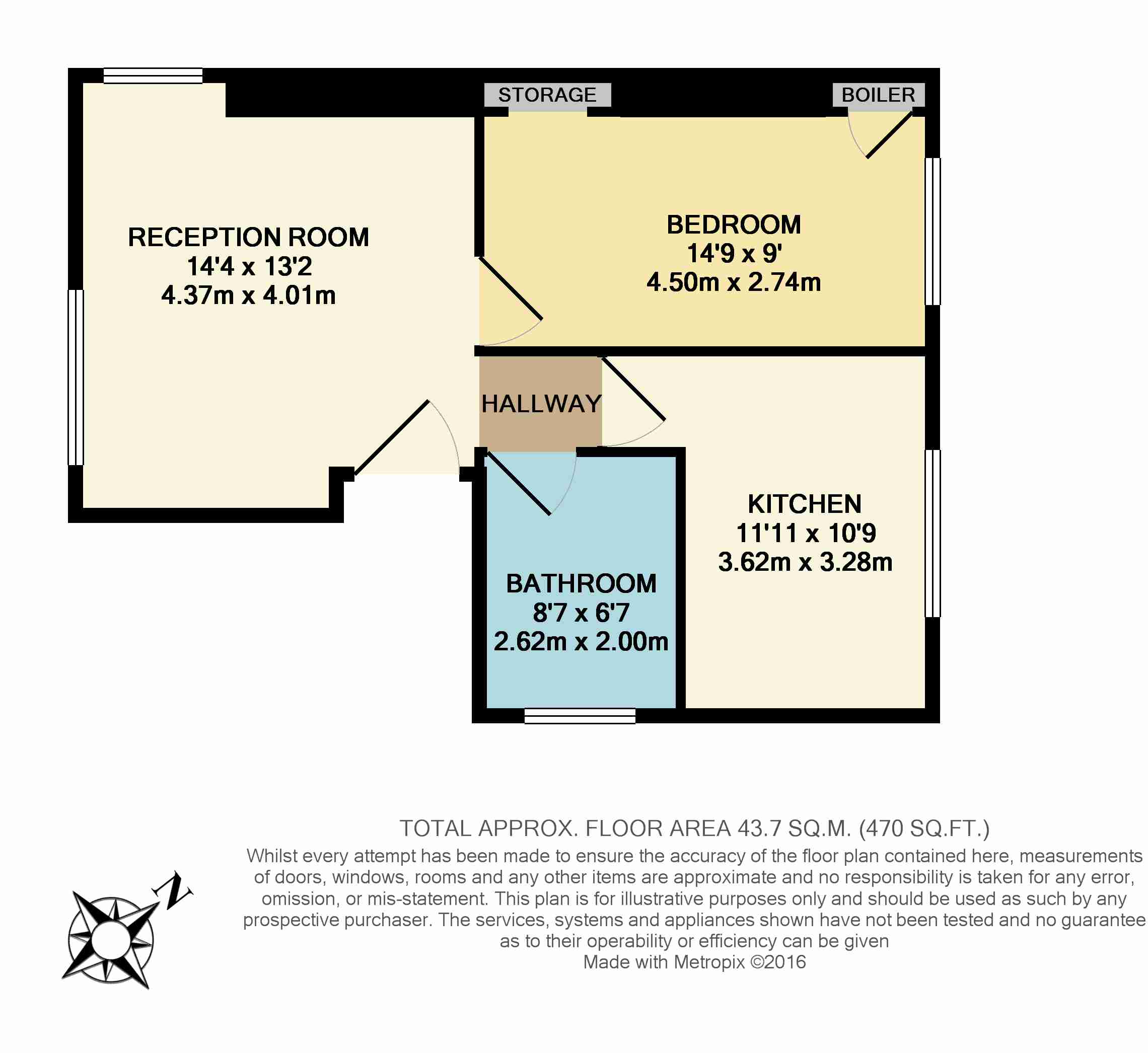 The master bedroom (4.50M x 2.74M) which also has storage.