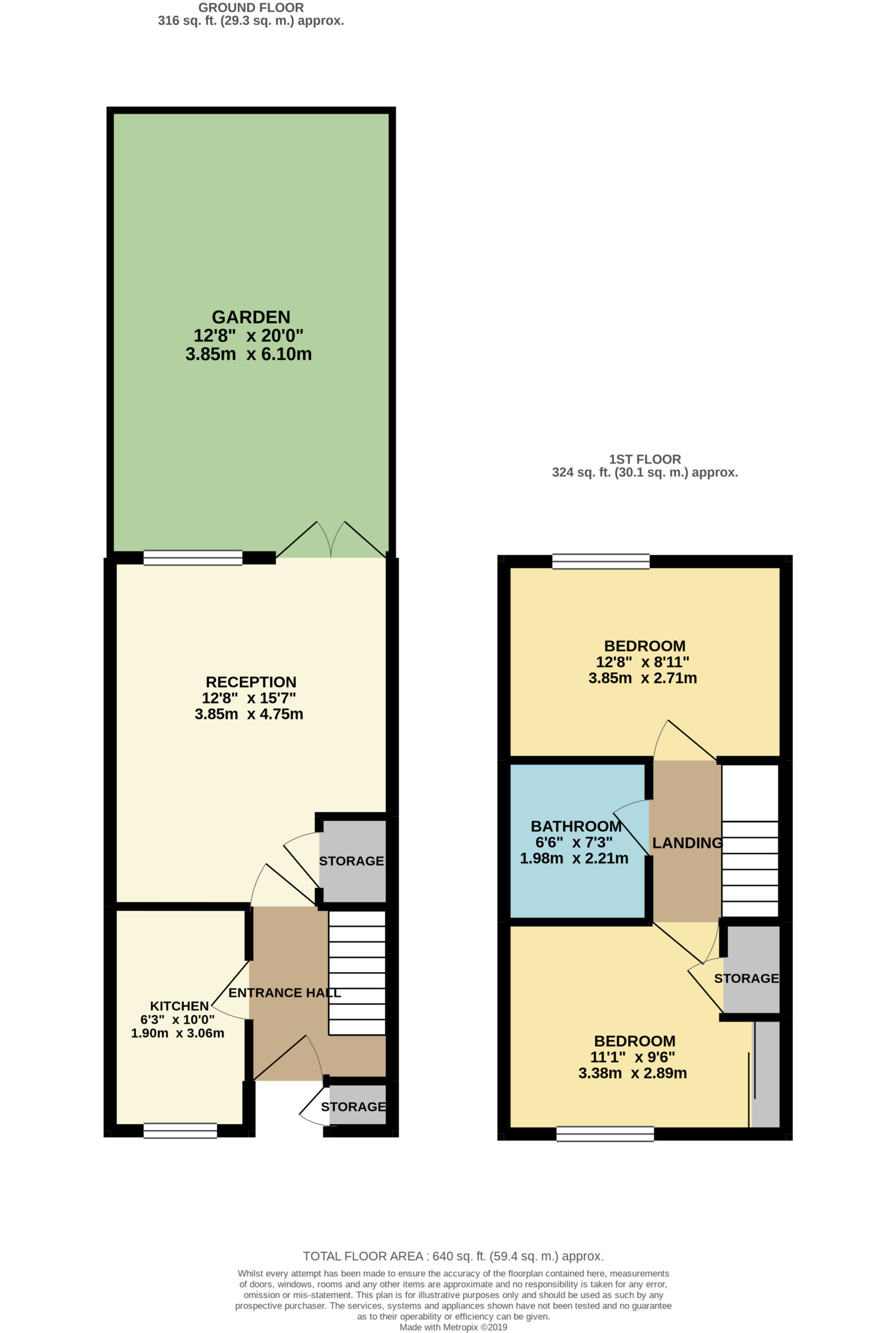 Two bedrooms, bathroom, Reception and Garden. (316 Sq Ft / 29.3 Sq m)
